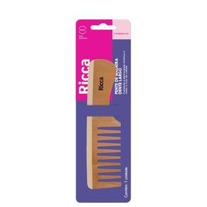 Pente de madeira para todos os tipos de cabelo. Ricca conta com dentes largos que facilitam o desembaraço dos fios secos.