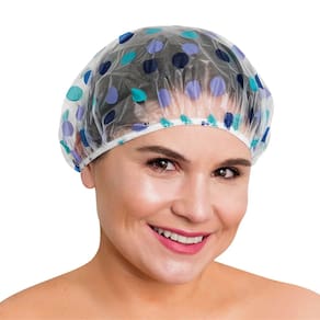 A Touca de Banho Ricca protege o cabelo durante o banho e também pode ser usada como touca de hidratação.