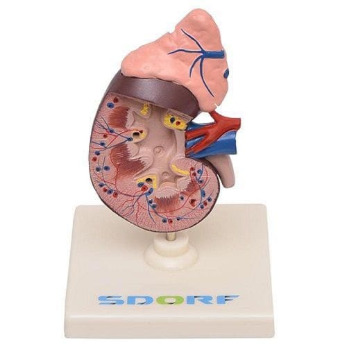 Modelo anatômico de rim em duas partes, confeccionado em PVC, evidencia as estruturas internas e funcionais bem com apresenta a glândula adrenal;O modelo SD-5051 apresenta as seguintes estruturas entre outras:* Margem Lateral; * Margem Medial; * Hilo Renal; * Córtex Renal; * Pirâmide Renal; * Coluna Renal;* Cálices Maiores; * Cálices Menores; * Pelve Renal; * Ureter; * Artéria Renal; * Veia Renal; * Cápsula Renal Superior; * Cápsula Renal Inferior; * Glândula Adrenal;&Ndash; Montado sob base plástica;Acompanha:01 Base plástica;01 Haste;01 Manual em português,01 Termo de garantia.Embalagem: Caixa de papelão.Informação adicionalPeso 0.425 kgDimensões 12 x 12 x 8 cm