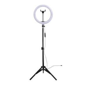 Ring Light 10 - 26cm O ring light de 10 polegadas é o produto ideal / essencial para youtubers, tiktokers, maquiadores, cinegrafistas, fotógrafos e afins, proporcionando uma ótima iluminação. Características: Tamanho do ring light: 10 / 26cm; Tamanho do tripé: 210cm máximo ; Alimentação através de cabo usb pode ser ligado em pc`s, notebooks e carregadores de celular ; Controle de iluminação: 3 luzes com 10 níveis cada; Acompanha: 01 ring light 10 / 26cm; 01 tripé de até 210cm; 01 controle ligado ao usb; 01 suporte para celular; Marca: Não Informado
