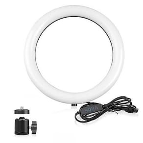 Ring Light Iluminação Profissional 26 Cm Fotografia, vídeo, maquiagem, tatuagem, estética, etc.... Características do Produto: Temperatura de cor de 3000K à 6000K ±200K . Dimmer para ajuste de temperatura da cor quente e fria Dimmer para ajuste de Potência Base articulável 180° Existem dois dimmers para controle de temperatura e de luz Especificações do Produto: Lúmens: 8000lmTensão de Entrada: 5V USB Diâmetro externo: 26 cm 10 polegadas Peso do Ring Light: 450g. Tripé em alumínio: Altura Min.: 0,68cm. Altura Max.: 2,10m. Peso aproximado: 4Kg. Abertura dos pés: 0,83 cm. Contém: - 1 Ring Light de 10 polegadas 26CM - 1 Fonte de energia USB Embutido - 1 Suporte Celular - 1 Tripé de 2 metros Ean: 7896935772876
