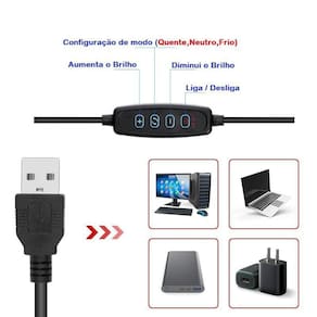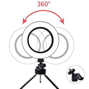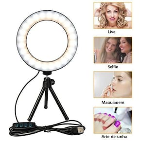 Kit Completo Iluminador Luz LED Ring Light Youtuber Maquiagem Pro 6 Polegadas 16cm com Tripé 15cm Iluminador De Led Com Tripe Ring Light Usb 16cm 3500k 5500k Iluminador Ring Light de 16 centímetros 6,5 polegadas , desenvolvido para maquiadores, fotógrafos, cinegrafistas e etc, que buscam uma ótima maneira de iluminar com perfeição. Você pode ajustar o ângulo da iluminação por possuir um suporte articulado. É possível controlar as diferentes temperaturas de cores através do controle de ajuste que vai de 3500k à 5500k. Na frente dos leds tem um filtro difusor para suavizar a luz espalhando a luz com maior uniformidade. A alimentação do iluminador é através de cabo USB você pode utilizar um adaptador de tomada de celular para ligar ou conectar no USB do computador ou outro equipamento que forneça 5v USB. O cabo USB deverá estar sempre ligado para funcionar. O encaixe do Ring ligth é através de encaixe padrão de tripés de rosca. O mini tripé também serve para utilizar em outros equipamentos de até 1kg de peso, como projetores, celulares e etc. É recomendado e extremamente eficaz para a macro fotografia, fotografia médica, odontológica, científica, hobby e para a iluminação/fotografia de produções de maquiadores. Fácil de usar, durável e de pouco peso, facilitando o transporte. Especificações: Diâmetro : 16 cm Alimentação: 5v USB Comprimento aproximado do cabo: 1,90m Temperatura de cor: 3200k - 5500K ajustável Ângulo Regulável: Marca: Não Informado