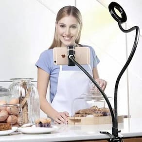 Itens inclusos: - 01 ring light youtuber blogueira maquiagem live; - 01 suporte celular Não segue com o celular Ean: 6015049848883