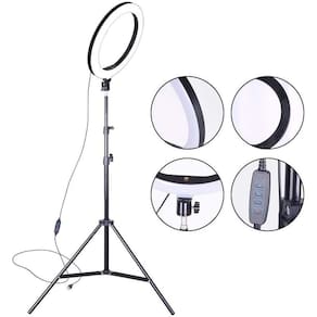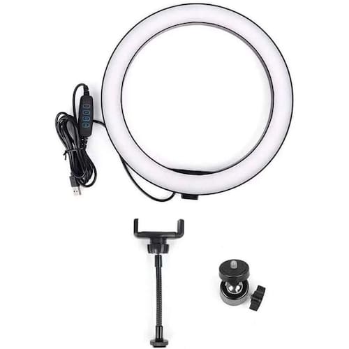 Iluminador Ring Light de 26 centímetros, desenvolvido para maquiadores, fotógrafos, cinegrafistas e etc, que buscam uma ótima maneira de iluminar com perfeição. Iluminação do produto possui dois botões: 1 botão – aumenta e diminui intensidade da luz; 2 botão – altera a cor da luz para branco frio, neutro ou quente. A alimentação do iluminador é através de cabo USB (não acompanha adaptador de tomada e não possui bateria interna recarregável), você pode utilizar um carregador usb v8 adaptador de tomada de celular para ligar ou conectar no USB do computador ou outro equipamento que forneça 5v USB. O cabo USB deverá estar sempre ligado para funcionar. Dimensões: 26cm externo Dimensões: 20cm interno AVISO: entrada do produto USB é compatível com fonte de celular (FONTE NAO INCLUSA) NÃO ACOMPANHA CABO CARREGADOR. Conteúdo da Embalagem: 1x Ring Light 26cm 1x Adaptador de celular 1x Adaptador 1x Tripe 2.0m.