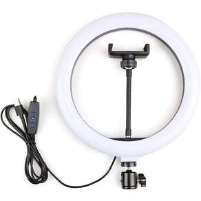 Este Iluminador de Led Circular 10 Ring Fill Light Live USB Bilvot (110V-220V) com Tripé de Iluminação e Suporte de Celular conta com uma estrutura circular leve e prática de manusear, peso aproximado de 500 gramas, contando com um total de LED intensidade regulável que oferecem alta qualidade em sua luminosidade e intensidade do brilho ajustável de 0 a 100%. Iluminador Ring Ligth LED 10 polegadas de 26 centímetros possui fixado em sua estrutura um suporte para câmeras e outros dispositivos e um suporte inferior para encaixe em tripés de iluminação, sendo adaptável para permitir ajustes em angulações de 360 graus.