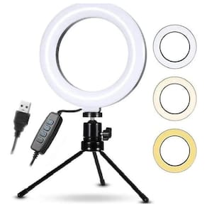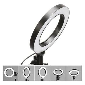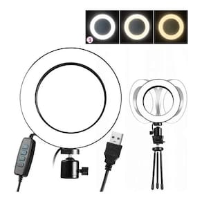 Ring light iluminador luz led selfie tripé mesa Características principais marca ring fill light modelo ring light com controle outros tipos de alimentação: usb potência: 12 w formatos da luz: led é dimerizável: não é led: sim acessórios incluídos: ring light - encaixe articulado - tripé de mesa largura: 16 cm profundidade: 1.5 cm altura: 16 cm Ean: 7891388300027