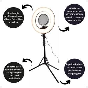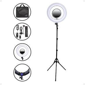 Ring Light Klass Vough Kv Digital Ref. Rl-002 O KV Ring Light Digital Klass Vough é a escolha perfeita para quem busca iluminação profissional para vídeos, fotos, lives e maquiagem! Com 480 LEDs, potência de 90W e ajuste de temperatura de cor de 2700K a 5600K, ele garante luz uniforme e de alta qualidade para todas as suas produções.