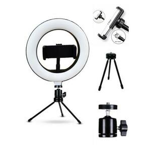 1 anel de luz de 6 polegadas 1 tripé de mesa 1 controle de intensidade de iluminação 1 suporte articulado central