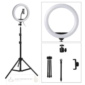 - Alimentação: 5v Usb - Comprimento aproximado do cabo: 1,80m - Temperatura de cor: 3200k - 5500K ajustável - Ângulo Regulável: Sim - Peso do Ring: 600g - Peso do tripé: 820g