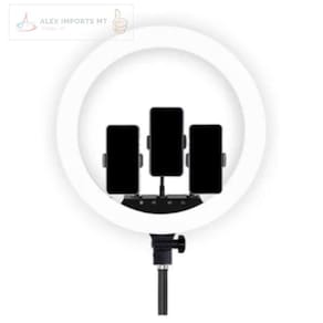 Este é um iluminador de vaidade que traz maior facilidade na hora de se maquiar e tirar fotos. Ele é de fácil utilização e armazenamento. A alimentação do iluminador é através de cabo de energia. Com lâmpada LED e regulador de temperatura, ele também conta com suporte para até três celulares para iluminação ao vivo. E tripé de 1,6m para ficar na altura ideal.