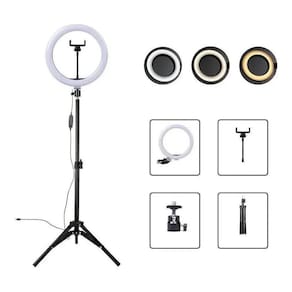 O Ring Light possui um diâmetro de 30cm e é acompanhado por um adaptador e cabo USB, garantindo a praticidade de uso. O suporte também é regulável, podendo ser utilizado tanto para câmeras quanto para celulares.