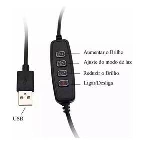 O Ring Light possui um diâmetro de 30cm e é acompanhado por um adaptador e cabo USB, garantindo a praticidade de uso. O suporte também é regulável, podendo ser utilizado tanto para câmeras quanto para celulares.