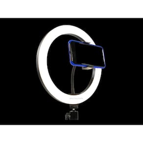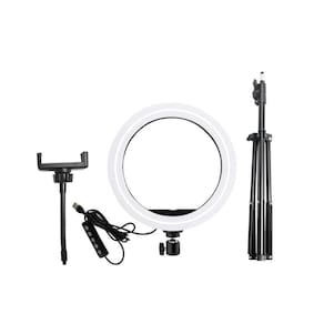 Itens inclusos: 1 anel de luz Ring Light com cabo USB e controle 1 cabeça de apoio 360º 1 suporte para celular 1 tripé de chão