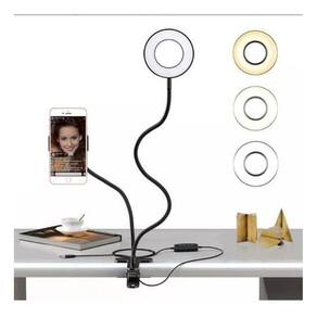 Ring Light + Suporte Celular Selfi Luminaria Abajur Youtuber Cor: Preto Você sempre sonhou assistir séries no Netflix sem cansar seus braços