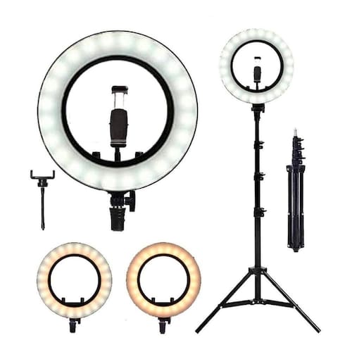 Características: - alimentação: usb - voltagem: bivolt - tipos de luz: quente, fria e mesclada. - dimensões aproximadas do anel de led axlxp : 26x26x1,5cm - altura aproximada do tripé com encaixe articulado: 54cm - altura máxima aproximada: 1,6m - material do tripé: ferro - tamanho aproximado do cabo: 1,5m - cabo com controle de liga/desliga, tipo de cor e modulador da intensidade de luz. - suporte de celular conectado na parte de dentro do anel.