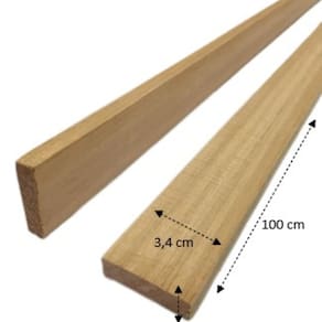 Ripa lisa, ripa lixada, sarrafo de madeira aparelhado. Medidas: 1 cm de espessura, 3,4 cm de largura, 1,00 metro de comprimento. Madeira de eucalipto. Indicado para Bricolagem, desperte sua criatividade!