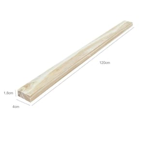 Altura 1,8cm Comprimento 120cm Profundidade 4cm Peso Suportado Depende da finalidade ou do suporte para fixá-la Material Madeira maciça de pinus de reflorestamento. Acabamento Madeira natural crua, lixada e lisa Necessita Montagem? A Cubomob não realiza a instalação do produto Ferramenta Necessárias