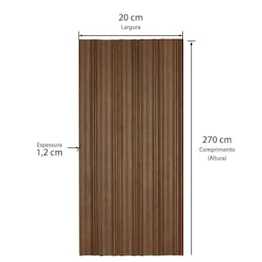 O ripado côncavo CASABLANCA é composto por barras de 270cm de comprimento, 1,2cm de espessura e 4,5cm de largura, área de cobertura de 4cm, pois uma barra sobrepõe a outra. Comercializado em pacotes com 5 unidades, o pacote (ou seja, as 5 barras juntas) cobrem 20cm de largura por 270cm de altura = 0,54m².