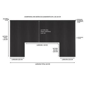 Acompanha uma barra de acabamento em L de 240cm, para fixação na extremidade superior da cabeceira.