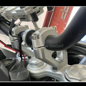 Características: - fabricado em alumínio naval usinado em cnc; - o guidão será elevado em aproximadamente 1,2 centímetros; - o guidão ficará 2 centímetros mais próximo do piloto; - você mais relaxado e confortável com posição sentada vertical; - melhora o manuseio e a experiência de condução/pilotagem; - não é necessário alteração nem ajustes dos cabos e flexíveis; - qualidade superior anonizado em prata.