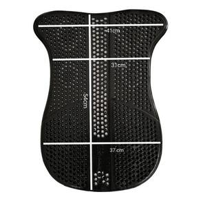 seu design, através dos múltiplos cana1s permeados, permite a transpiração. também podendo ser ut1l1zad0 sobre a manta, o riser pad gel tem capacidade de absorver choques decorrentes do trabalho.