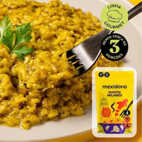 Risoto Milanês O delicioso e verdadeiro sabor do risoto italiano SEM GLÚTEN - SEM CONSERVANTES - SEM LEITE - 100% NATURAL Pacote com 180g 1 pacote rende 3 pratos Pronta em 25min Com tempero natural, dispensa o uso de caldos no preparo. Embalagem 100% Biodegradável Por que a Mexidona combina com a sua dieta: refeição saudável e descomplicada que te salva no dia a dia. refeições com sabor incrível e 100% livre de culpa. tranquilidade em ter refeições seguras e nutritivas sempre a mão. A seleção de ingredientes naturais e a tradicional receita de risoto italiano de arroz arbório é o segredo da textura cremosa e do sabor delicioso do Risoto Milanês da Mexidona. Fácil de preparar e um prazer saborear, o risoto perfeito para você preparar um jantar especial sem complicação. Com o Risoto Milanês da Mexidona a textura cremosa e a riqueza de sabores tornam cada garfada uma experiência deliciosa, e repleto de nutrientes, tornando-o uma escolha saudável para sua família. Na Mexidona, estamos comprometidos em fornecer refeições tão nutritivas quanto deliciosas. Nosso risoto é livre de aditivos e conservantes artificiais, gordura, leite e sal, garantindo o sabor e os nutrientes dos alimentos de verdadeiro. Preparo rápido e fácil: dispensa o uso de caldos, o Risoto Milanês da Mexidona conta com temperos naturais ricos em sabor. Para preparar o risoto basta adicionar água e sal a gosto. Ingredientes Arroz arbório, cebola, castanha-de-caju moída, alho, cúrcuma e salsinha. sem Glúten, Zero Conservante, Zero Glutamado MSG FREE Zero Sal, Zero Leite, Sem Adição de Gordura Modo de preparo É muito fácil preparar 1. coloque na panela o conteúdo do pacote e sal. 2. adicione 1 litro 5 xícaras de água quente aos poucos, mexendo até os grãos ficarem macios. 3. finalize com azeite de oliva ou . O tempo de cozimento é de 25 minutos, podendo variar de acordo com o tipo de fogão, panela e intensidade de fogo. Para que o risoto fique mais cremoso, mexa sempre até o arroz chegar no ponto desejado. Rendimento: um pacote de Risoto Mexidona serve 3 pratos de risoto com cerca de 275g
