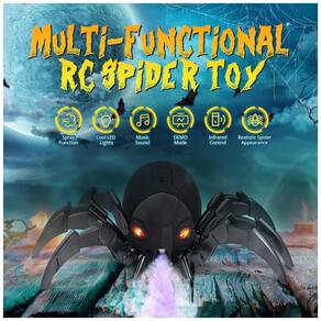 Esta aranha de Halloween de controle remoto pulveriza névoa real quando você pressiona o botão spray. Adicione alguns conta gotas por um longo tempo de pulverização. É construído com luzes LED azul escuro e vermelho ao lado do bico de pulverização e traz uma ótima experiência visual. A aranha que brilha no escuro DEERC 128A vem com uma luz LED de efeito de olhos vermelhos na cabeça da esquerda e da direita, ela emitirá um efeito de luz LED vermelha brilhando lentamente, e há presas em Cada lado da boca da aranha, enquanto isso, sob a função da função de névoa de pulverização, isso o torna muito impressionante e vívido no escuro, como se uma aranha de ferro aparecesse na sua frente. Ele toca música enquanto rasteja no chão aleatoriamente, o que é um brinquedo de aranha legal para crianças, amigos, vizinhos, meninos e meninas brincando. O brinquedo de aranha DEERC vem com 2 modos DEMO. Pressione o botão One Key DEMO, o brinquedo de aranha de Halloween rastejará automaticamente em duas faixas diferentes de acordo com o programa predefinido, borrifando névoa de água e tocando música Marca: Não Informado