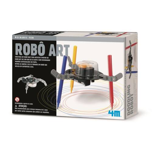 Construa um robô que é um artista, um robô criativo com poderes mecânicos e científicos. Este novo robô futurista pode fazer uma imagem ao vibrar desenhando padrões espetaculares no papel. Retire as canetas e ele se tornará um robô que desliza em superfícies lisas. Poderá utilizar canetas extras estendendo os braços realizando padrões ainda mais coloridos. Você poderia adicionar canetas esferográficas ou lápis de cor em vez de canetas de feltro. Especificações: Marca: 4M - Idade Recomendada: +8 anos. Itens inclusos: um peso, parafusos e porcas, parafusos, dois pinos conectores, uma placa de base, três suportes de braço, suportes de caneta, três ponteiras de braço, fita adesiva, uma capa transparente, três canetas hidrocor, um motor com fios e uma capa de motor e instruções detalhadas. Dimensões aproximadas da caixa: 24 x 17 x 6 cm. ATENÇÃO: Observe atentamente a idade recomendada para o brinquedo. Pode conter partes pequenas que podem ser engolidas e perigosas. As fotos são para ilustrar o produto. Certificado INMETRO CE-BRI-SGS N-0060-80 NM 300-2002. Código do produto: K00-03280. Código de barras EAN: 4893156032805