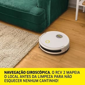Robô Aspirador Krcher RCV 2: Combina 2 dispositivos em 1 e pode ser utilizado tanto para aspirar quanto para passar mop no chão, permitindo a limpeza seca, úmida ou combinada. Além de possuir controle remoto, com o aplicativo krcher home robots é possível programar horários de funcionamento, ajustar parâmetros de limpeza, compartilhar o dispositivo com outros membros da família e muito mais.