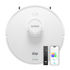 Controle tudo pelo smartphone via app WAP CONNECT ou pelo controle remoto. A navegação a laser (LDS) e a tecnologia SLAM permitem mapeamento em tempo real com varredura 360°, criando mapas precisos em 2D e 3D. O robô memoriza até cinco andares e permite personalizar a limpeza por cômodo, zonas e paredes virtuais.