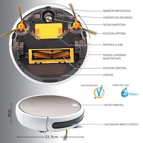 • Sensores ópticos localizados na frente do robô permite que ele identifique obstáculos à frente e desvie deles sem a necessidade de tocá-los! Com isso você preserva seus móveis evitando riscos e manchas com o tempo.