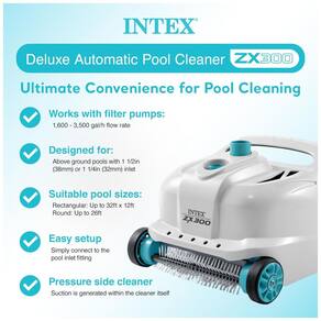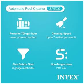 MANTÉM SUA PISCINA LIMPA Poderosa sucção movida a água de 700 gal, hora 2649 Litros, hora tração nas quatro rodas tração nas quatro rodas movida a água para ação de limpeza rápida e desempenho superior em escalada de parede BOMBA NECESSÁRIA Bomba Intex com vazão entre 1.600 3.500 gal, hora 6050 a 13248 litros, hora necessária não inclusa LAVADORES DUPLOS Lavadores de sujeira duplos rotativos para limpar até a sujeira mais fina e difícil de remover até a linha de água FILTRAGEM DE DETRITOS Filtro de malha fina de 6ga 0, para capturar até mesmo os detritos mais finos. Recipiente de detritos de grande capacidade de 0,48 gal 2 L. Mangueira sem emaranhado de e . OPERAÇÃO DO LADO DE PRESSÃO Conecta se à entrada de água que volta para a piscina e usa a pressão da água não sucção para operar Para uso com piscinas acima do solo Intex com forros de PVC e conexões de entrada com rosca de . ATENÇÃO Não é adequado para piscinas Intex Easy Set ou piscinas com anel superior inflável Marca: Não Informado