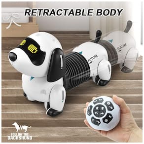 Cão Dachshund Simulado O cão robô tem aparência e ações adoráveis, pode andar para frente ou para trás, olhar para a esquerda ou para a direita Seu corpo vai alongar e encurtar. Você pode fazê lo executar as ações pelo controlador. Seguindo e dançando Pressione o botão seguir, a função automática de seguir faz o cachorro andar seguindo o controlador de bola, é um seguidor persistente. O cachorro tem 3 danças com música, as crianças dançando junto com ele vão ficar mais alegres. Função de interação toque na boca do cachorro, ele fará movimentos e sons fofos e cantará músicas. É a grande interação com as crianças, será uma ótima companhia. Função de programação 50 ações podem ser programadas, você pode programar as ações que quiser, então o cachorro repetirá o que você programou. Materiais de alta qualidade o cão é feito de plástico de alta qualidade com superfície lisa, não machuca as mãos das crianças ao brincar. Ele usa bateria recarregável de 3,7 V incluída, 2 pilhas AAA de 1,5 V para o controlador não incluídas. Será um ótimo presente para seus filhos Marca: Não Informado