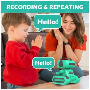 O brinquedo conta com função de gravação, permitindo registrar mensagens de voz de até 15 segundos, que podem ser reproduzidas em modo de repetição. Os comandos do controle remoto acionam modos de deslocamento, giro, variações de olhos em LED e seleção de músicas, mantendo o uso simples para o público infantil. A estrutura foi projetada para uso em pisos internos, como superfícies lisas e carpetes baixos.