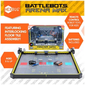 HEXBUG BattleBots Arena MAX, brinquedos robóticos de controle remoto para crianças com mais de 30 peças, brinquedos STEM para meninos e meninas de 8 anos ou mais, baterias incluídas - HEXBUG BATTLEBOTS: os BattleBots são os brinquedos tecnológicos robóticos perfeitos para meninas e meninos a partir de 8 anos, com um robô-tanque personalizável com mais de 30 peças e o ex-campeão Tombstone. Esses brinquedos de construção permitem que os fãs do BattleBots joguem jogos de batalha com brinquedos robóticos. - ARENA DE BATALHA: Duas vezes a arena é igual ao dobro da batalha! Prepare seu Battlebot para uma partida cheia de ação dentro da arena, com paredes para manter seus brinquedos de RC dentro. O último robô sobrevivente vence! Cuidado com o Pulverizer! - PERSONALIZE SEU BOT: Esses brinquedos de construção permitem que você personalize seu próprio robô de tanque rc com mais de 30 peças, para que você possa experimentar a emoção de projetar seu próprio robô de combate. - BRINQUEDOS DE APRENDIZAGEM E EDUCAÇÃO: Esses brinquedos de alta tecnologia para crianças são ótimos brinquedos de aprendizagem para ajudar a desenvolver a coordenação olho-mão e criar um ambiente saudável e divertido para a competição. Baterias e 2 controles remotos incluídos. - BRINQUEDOS E JOGOS ROBÓTICOS PARA CRIANÇAS: Os brinquedos robóticos são uma adição fantástica à sua coleção de coisas legais e são ótimos brinquedos STEM para meninos e meninas para incentivar a criatividade e a paixão pela construção! - Coberto pelo Compromisso Spin Master Care. Veja abaixo os detalhes completos