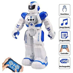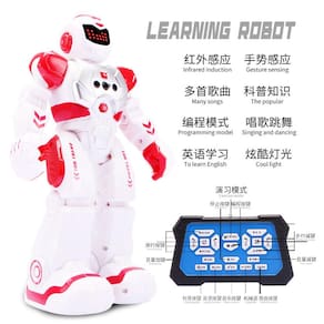 Função forte: música / vocalização, flash, canto, dança, aprender inglês, aprender conhecimento de ciências.--Vem com diferentes modos: Modo de velocidade - andar e deslizar. Modo Demo - Auto-demonstração de música, dança e conhecimento. Modo de programa - predefina as diferentes ações para o robô. Modo de conhecimento - conhecimento simples sobre astronomia. English Words Mode - 28 Simple Words.- A melhor ferramenta de ideias para ajudar a ensinar conceitos de ensino em robótica, ciência, arte.