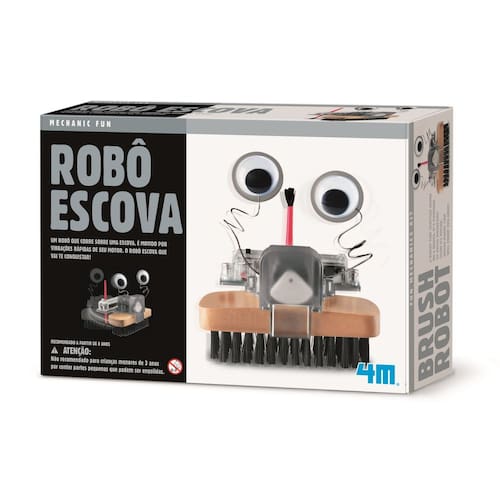 Um robô que corre sobre uma escova. É movido por vibrações rápidas de seu motor. O robô escova que vai te conquistar. Este simpático robozinho, que desliza sobre superfícies lisas, é uma escova robótica movida por forças dinâmicas e que pode ajudar você a remover a sujeira a qualquer hora. Requer duas pilhas AAA, e as vezes auxílio de um adulto - aproximação entre pais e filhos. Especificações: Marca: 4M - Idade Recomendada: +8 anos. Itens inclusos: Um conjunto de peças plásticas para o corpo mecânico montagem necessária , uma caixa de bateria com os fios, uma escova de madeira, um pincel, um par de olhos que se movem, um motor e instruções detalhadas. Pilhas não inclusas. Dimensões aproximadas da caixa: 24 x 17 x 6 cm. ATENÇÃO: Observe atentamente a idade recomendada para o brinquedo. Pode conter partes pequenas que podem ser engolidas e perigosas. As fotos são para ilustrar o produto. Certificado INMETRO CE-BRI-SGS N-0060-80 NM 300-2002. Código do produto: K00-03282. Código de barras EAN: 4893156032829 Ean: 4893156032829