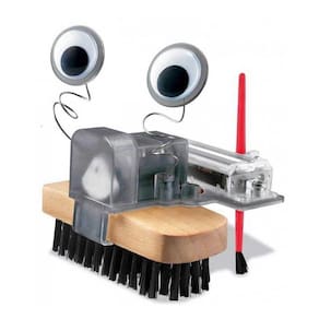 O Robô Escova 4M é um robô que corre sobre uma escova, movido por vibrações rápidas de seu motor ele desliza por superfícies lisas e sai limpando a sujeira que estiver pela frente.