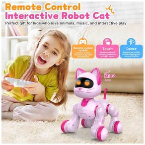 O robô gato interativo da marca Toy-Robotics apresenta acabamento em rosa delicado, combinando design encantador com funcionalidades tecnológicas e educativas. Projetado para crianças a partir de aproximadamente 4 anos, este brinquedo imagina-se como um companheiro animado: ele se movimenta para frente e para trás, gira e responde a comandos via controle remoto. Sua programação permite gravar e executar sequências personalizadas de movimentos e sons, estimulando a criatividade, a coordenação motora e o senso de sequência.