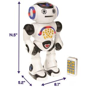 INTERATIVO É um robô que fala, dança, toca música e apresenta toneladas de efeitos de luz e som EDUCACIONAL Responda seus enigmas engraçados e fascinantes sobre números, animais, vida diária perfeita para crianças CONTA HISTÓRIAS Descubra as maiores fábulas de Esopo contadas por Powerman, bem como suas piadas favoritas DIVERSÃO Ele atira discos de espuma Pressione o botão de gravação e Powerman repetirá depois de você com sua voz engraçada de robô COM REMOTO Controle Powerman para frente, para trás, para a direita e para a esquerda, ele vai em qualquer direção Fonte de alimentação 5 pilhas LR6, AA para robô não incluídas 2 pilhas LR6, AA para controle remoto não incluídas. Inclui 1 robô 1 controle remoto 1 manual de instruções 9 discos de espuma Marca: Não Informado