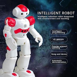 Robô Inteligente Multi-função Carregamento Brinquedo Infantil Dança Controle Remoto Característica: Treinamento de habilidade: cérebro manual, visão, desenvolvimento de interesses, desenvolvimento intelectual, sentidos, emoções, audição, comunicação pai-filho, coordenação mão-olho, engatinhando, brinquedos interativos Material: Plástico / Plástico Função: música / som, controle remoto, recarregável, flash, elétrico Especificações: 16X9X26CM Modo de fonte de alimentação: bateria de lítio Movimento: Tem 25 graus de liberdade e uma forma humanoide que lhe permitem mover-se e adaptar-se ao mundo que o rodeia. Sua unidade inercial permite que ele mantenha seu equilíbrio e saiba se está de pé ou deitado. Sentimento: Os numerosos sensores em sua cabeça, mãos e pés, bem como seus sonares, permitem que ele perceba seu ambiente e se oriente. Audição e fala: Com seus 4 microfones direcionais e alto-falantes, interage com os seres humanos de uma maneira completamente l, ouvindo e falando. Seeing: equo com duas câmeras que filmam seu ambiente em alta resolução, ajudando-o a reconhecer formas e objetos. Pensamento: Não podemos realmente falar sobre "Inteligência Artificial" com ela, mas os robôs já são capazes de reproduzir o comportamento humano. O reconhecimento de fala e o diálogo estão disponíveis em 20 idiomas. Controle remoto: distância de controle remoto de 10 metros UMA PLATAFORMA REVOLUCIONÁRIA PARA VÁRIOS CASOS DE USO A partir de hoje, mais de 20.000 robôs são s em várias verticais da indústria, tornando o robô humanoide mais em todo o mundo. Seu design, capacidades e robustez o tornam uma plataforma envolvente e inteligente em educação, saúde e varejo. Conteúdo do Pacote: 1 Smart Robot1 controle remoto1 cabo de carregamento USB