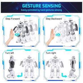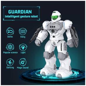Versão atualizada Mais legal do que você imagina e mais resistente do que parece, este brinquedo robô tem os mais recentes estilos de formas e funções com um controle remoto de 2,4 GHz. Segurando s e escudos de proteção, ele está pronto para ser um fiel companheiro das crianças. Controle Remoto e Sensor de Gestos Este robô com sensor de gestos pode não apenas ser controlado pelo controle remoto, mas também pode avançar, retroceder, esquerda e direita de acordo com seus comandos de gestos. Programação Intelectual O brinquedo robô pode ser programado através do controle remoto para demonstrar um conjunto de ações criadas pela criança, como Vire à esquerda Vire à direita Deslize para frente Recuo, o que permite que a imaginação da criança corra solta enquanto lhes traz diversão ilimitada. Robô Inteligente Recarregável Este robô RC se tornará o melhor parceiro para seus filhos com a função de cantar, dançar, contar histórias. 1 hora de reprodução após carregar por 60 minutos. Você pode carregá lo facilmente usando o cabo USB Marca: Não Informado