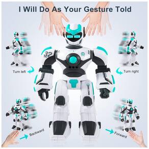 Fácil de usar Nosso brinquedo robô equipado com sistema operacional sem fio de 2,4 GHz e existem três modos de controle remoto Controle Remoto, Controle por Gestos e Controle por Voz. O robô inteligente pode se mover e dançar sob o controle de seus filhos, muito fácil e conveniente usar. Acompanhamento Inteligente Diálogo, Caminhada, Tocando Música, Dançando, Contando Histórias e assim por diante. Nosso Robô tem muitas habilidades, boas para a educação infantil. Não apenas como amigo, mas também como um bom professor para seus filhos. Os pais ocupados também têm um bom assistente para ter mais tempo pessoal. Brinquedo Robô Recarregável Nosso robô RC é apresentado com baterias internas de 3,7 V 350 mAh. Você pode carregá lo por computadores, powerbank, plugues, muito conveniente de usar. Nota O controle remoto requer 2 pilhas AA não incluídas. Material e qualidade confiável o design legal se parece com o de desenhos animados e videogames. Feito com materiais ABS supremos, 100 não tóxico e ecológico. Testado para segurança e durabilidade. Conheça o padrão dos EUA Marca: Não Informado