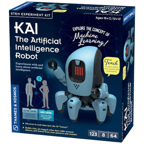 Use o aplicativo incluído para atribuir seus próprios movimentos às funções do seu robô, permitindo que ele ande, vire e pare explore o conceito de aprendizado de máquina à medida que seu robô de IA aprende os gestos e sons para melhor executar as funções atribuídas.