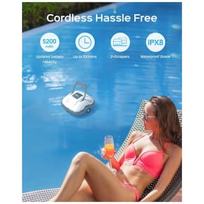 ÓTIMO DESEMPENHO DE LIMPEZA Alimentado por motores de acionamento duplo e equipado com dois raspadores auxiliares inferiores, este aspirador de piscina captura e retém facilmente sujeira, areia, folhas e detritos. Seu design de tiras à prova de vazamentos garante um funcionamento eficiente, evitando que detritos sejam liberados de volta na água da piscina. TEMPO DE FUNCIONAMENTO LONGO Experimente sessões de limpeza prolongadas com a bateria grande atualizada. Equipado com uma bateria de lítio durável de 5200mAh, este aspirador de piscina oferece até 100 minutos de limpeza sem fio, permitindo que você limpe efetivamente suas piscinas sem recargas frequentes. MANUTENÇÃO SEM FIO E FÁCILDiga adeus aos cabos emaranhados. Este aspirador de piscina sem fio descomplicado é adequado para piscinas acima do solo de até 10m de diâmetro e piscinas subterrâneas de até 12m. Compatível com todos os revestimentos de piscinas PVC, azulejos, vinil, concreto e formatos redondos, retangulares, ovais. TECNOLOGIA DE ESTACIONAMENTO AUTOMÁTICO Navegando pela piscina com facilidade, este robô de piscina inverte automaticamente ao encontrar paredes. Quando a bateria está fraca, ele se aproxima de forma inteligente da costa para facilitar o levantamento. O recurso de abertura fácil permite a limpeza fácil da bandeja do filtro usando a mangueira fornecida, economizando um tempo valioso Marca: Não Informado