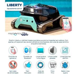 Robo limpador liberty 200 - sodramarconheça o robô liberty da sodramar, a inovação máxima em limpeza de piscinas. O dolphin liberty sodramar revoluciona a maneira como você mantém sua piscina limpa. Com seu design sem fio, ele elimina a necessidade de cabos de alimentação, proporcionando total liberdade de movimento ao equipamento. Esta simplicidade de operação o torna uma escolha perfeita para quem busca eficiência sem complicações.Alto desempenho em piscinas de até 10 metroso robô dolphin liberty sodramar é capaz de limpar piscinas de até 10 metros de comprimento em um ciclo de limpeza que dura até 2 horas e meia. Durante esse período, ele percorre todo o piso e as paredes da piscina, removendo sujeira, detritos e até mesmo pequenas partículas de forma eficaz. Sua tecnologia avançada de navegação permite que ele cubra cada centímetro da piscina, garantindo uma limpeza completa e homogênea.Filtro de alta capacidade: limpeza profunda e consistenteequipado com um filtro de alta capacidade, o dolphin liberty sodramar retém até as menores partículas de sujeira, deixando a água da sua piscina sempre limpa e saudável. Este filtro é capaz de capturar desde detritos maiores, como folhas e galhos, até partículas finas de poeira, garantindo uma qualidade de água superior. A manutenção do filtro também é simples e rápida, proporcionando mais praticidade no dia a dia. Homologação Anatel: 173242314103 Marca: Não Informado