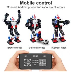 Kit Robô Avançado XR MRT Humanoid Robot é um robô humanóide multifuncional com 18DOF. Você pode controlá lo através do APP Android Bluetooth. Possui várias ações pré programadas, que podem realizar caminhadas básicas, lutas, futebol, dança e outras ações. É um robô totalmente autônomo. 18 DOF Metal Servo Este kit de robô humanóide inclui 18 servos que alimentam a cabeça, peito, braços e pernas do robô. 1 servo para cada cabeça e peito, 6 servo drives para os braços para uma ampla gama de movimentos e 10 servo drives para as pernas fornecem flexibilidade e força impressionantes. Programação fácil de aprender este robô humanóide oferece suporte ao desenvolvimento secundário. Você pode modificar as ações do robô por meio da interface de desenvolvimento secundária. Ele também suporta telefones e PC para programar o robô por meio de programação gráfica, que pode ser usada a qualquer hora e em qualquer lugar. O manual PDF de programação profissional está anexado, você pode criar um robô capaz de executar várias tarefas. Diversão para DIY Com este robô humanóide XR MRT, você também pode usar a dura externa para DIY uma variedade de formas, e o volante tem uma variedade de cores para escolher, com iluminação legal e forte interesse. O kit possui uma bateria embutida, o que significa que você não precisa se preocupar em comprar uma bateria separadamente. Dancing Robot Quando o APP carrega e toca música, o robô dança ao som da melodia. O XR MRT é uma excelente plataforma para exposições científicas populares, ensino prático de programação e melhoria da capacidade prática Marca: Não Informado