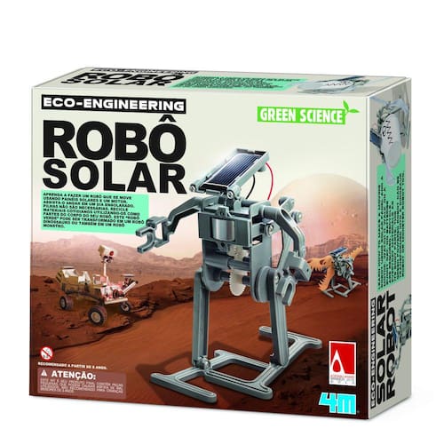 Aprenda a criar um robô movido através de um painel solar e um motor. Monte o robô e ele executará tarefas simples. Ele pode ser seu ajudante, mas ele precisa de um piso liso. Além da criança mergulhar na diversão com esse premiado brinquedo educativo, ela tem a possibilidade de ter contatos com conceitos de engenharia e consciência ambiental.Um kit super legal que ensina como construir um robô que se move usando um painel solar e um motor. Basta colocar o robô ao sol e ele se movimentará sem pilhas. Recicle materiais do dia e construa outros tipos de robô como o da foto: robô-monstro feito de copo e talheres descartáveis . Importante: para o robô se mover, deve estar em um piso liso.Especificações:Marca: 4M - Idade Recomendada: +8 anos.Itens inclusos: Contém um painel solar com fios, uma placa de suporte de painel solar, um braço de apoio, um corpo com motor e engrenagens instaladas, dois braços direito e esquerdo , dois conexões de pernas, dois pernas direita e esquerda , dois pés, dois clipes de suporte, dois pinos conectores, parafusos, parafusos com arruela e espuma adesiva dupla face.Dimensões aproximadas da caixa: 22 x 6 x 24 cm.ATENÇÃO: Observe atentamente a idade recomendada para o brinquedo. Pode conter partes pequenas que podem ser engolidas e perigosas.As fotos são para ilustrar o produto. Certificado INMETROCE-BRI-SGS N-0060-80 NM 300-2002.Código do produto: K00-03294. Código de barras EAN: 4893156032942 Ean: 4893156032942