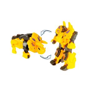 Design 2 em 1: O brinquedo pode ser transformado de um robô em um touro e vice-versa. Cor: O esquema de cores é amarelo e preto.