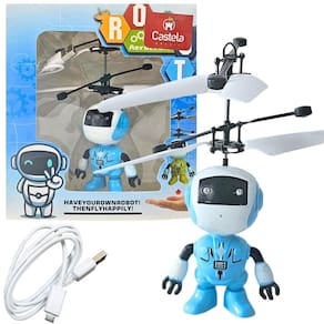 Robozinho Azul Brinquedo Voador Sensor De Mão Luz - Castela DESCRIÇÃO DO PRODUTO